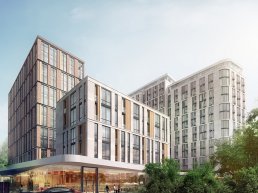 ЖК «Воробьев Дом» представляет собой квартал, состоящий из трех жилых построек переменной этажности. |